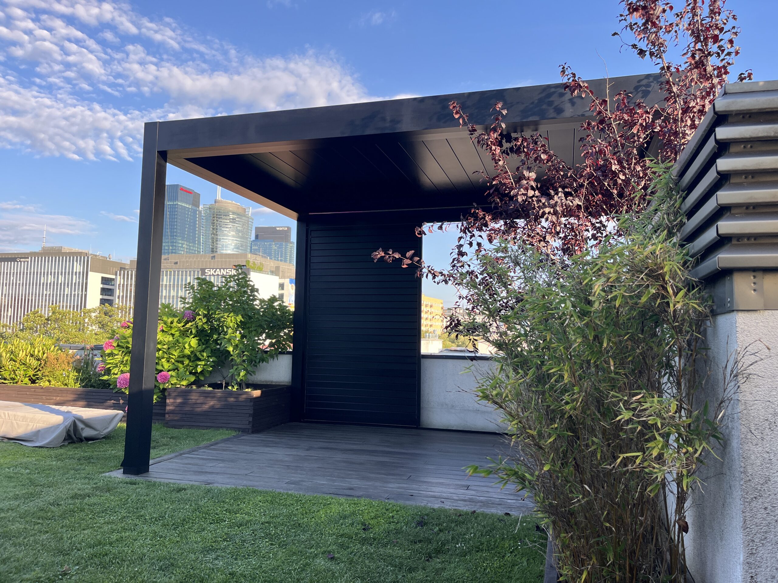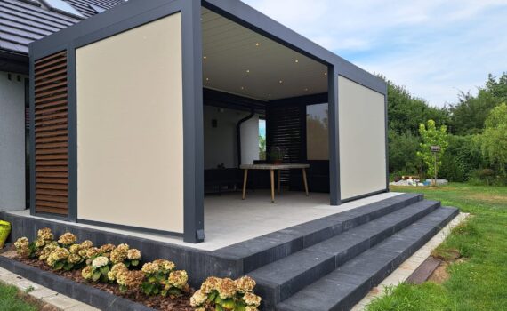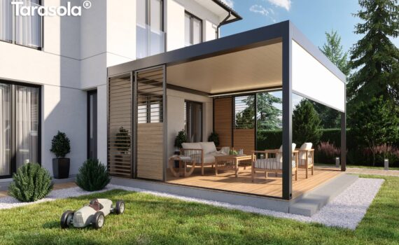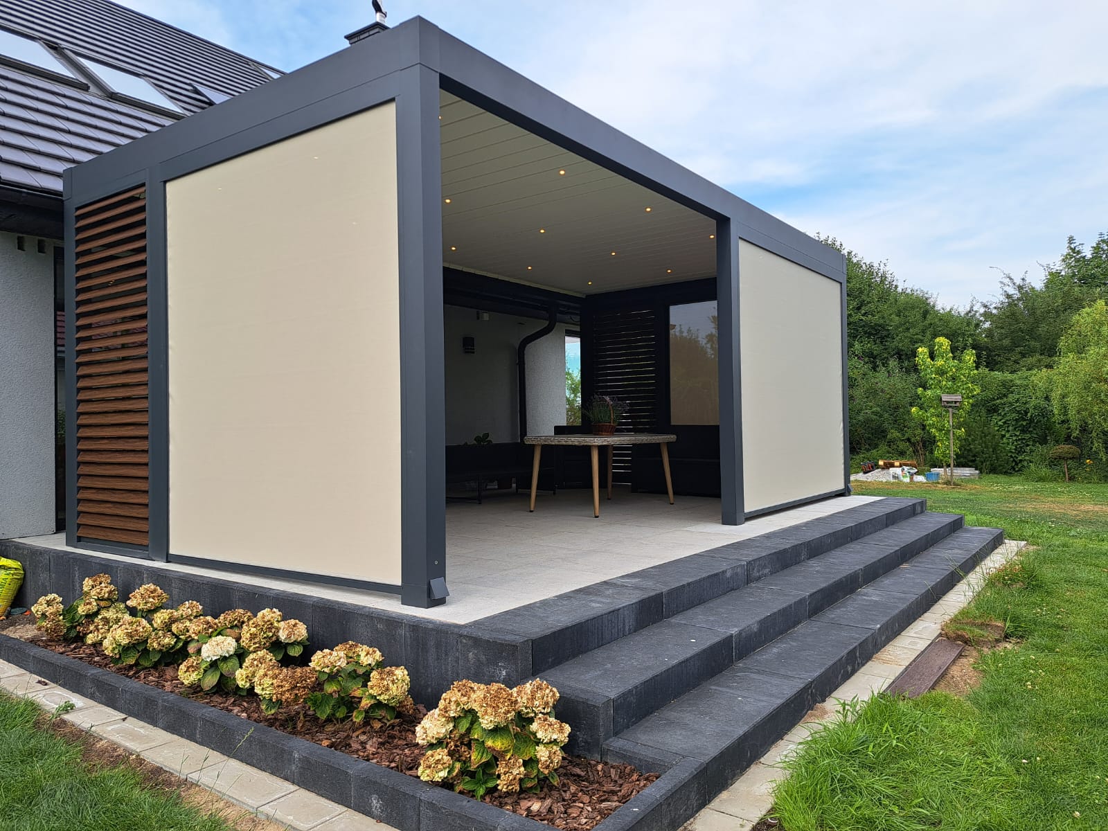 Okiennice przesuwne zwane inaczej shuttersami są funkcjonalnym i zarazem stylowym elementem wyposażenia tarasoli. Mogą również funkcjonować niezależnie i stanowić dekoracyjną, a przede wszystkim użyteczną część budynków. Panele zbudowane są z lameli, które dzięki możliwości regulacji kąta ich nachylenia zapewniają kontrolę nad światłem słonecznym. Z kolei ich podział na dwie sekcje umożliwia oświetlenie tej części chronionego obszaru, na której nam szczególnie zależy. Podobnie jak w przypadku przeszkleń, okiennice charakteryzują się modułowością, co sprawia, że możnaje grupować i osłonić większą powierzchnię. System kaskadowy pozwala na montaż shuttersów w taki sposób, że zsuwają się one wjednym kierunku, bądź symetrycznie w obie strony, chowając się za siebie i wpuszczając tym samym większe ilości światła oraz sprawiając, że przestrzeń staje się lepiej dostępna, aczkolwiek w dalszym ciągu stanowi kameralne miejsce do odpoczynku.
