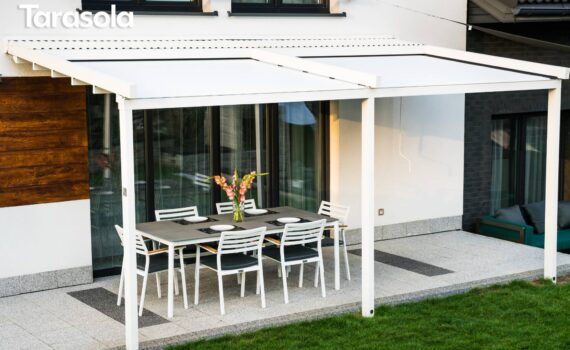 Tarasola Simple to jedno z zadaszeń o delikatnej, smukłej formie, które występuje w modelu przyściennym. Minimalistyczny design sprawia, że jest ona doskonałym rozwiązaniem dla zabudowań o zróżnicowanej architekturze, zarówno tej tradycyjnej, jak i nowoczesnej. Jednospadowy dach oraz system orynnowania sprawia, że woda deszczowa jestodprowadzana, w taki sposób, że chroni przed zbieraniem się jej w newralgicznych punktach dachu. Ruchomy dach jest przystosowany do sterowania manualnego, jak i automatycznegoz poziomu pilota, bądź smartfona. Dodatkowo, Tarasola Simple może być wyposażona w akcesoria poprawiające komfort użytkowania konstrukcji, takie jak: promienniki ciepła, oświetlenie czy rolet typu ZIP.